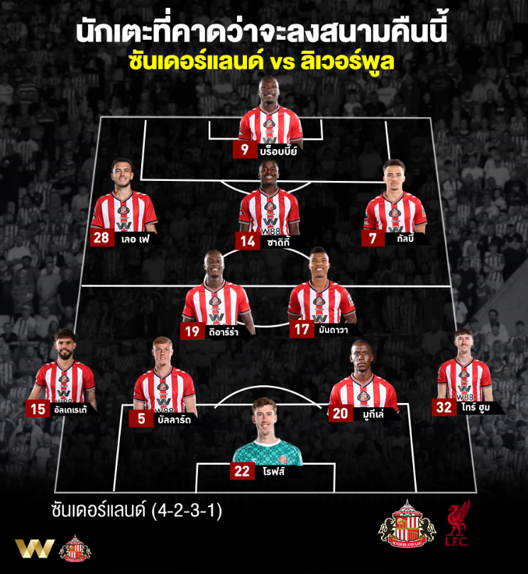 คาด 11 ตัวจริง ซันเดอร์แลนด์ vs ลิเวอร์พูล