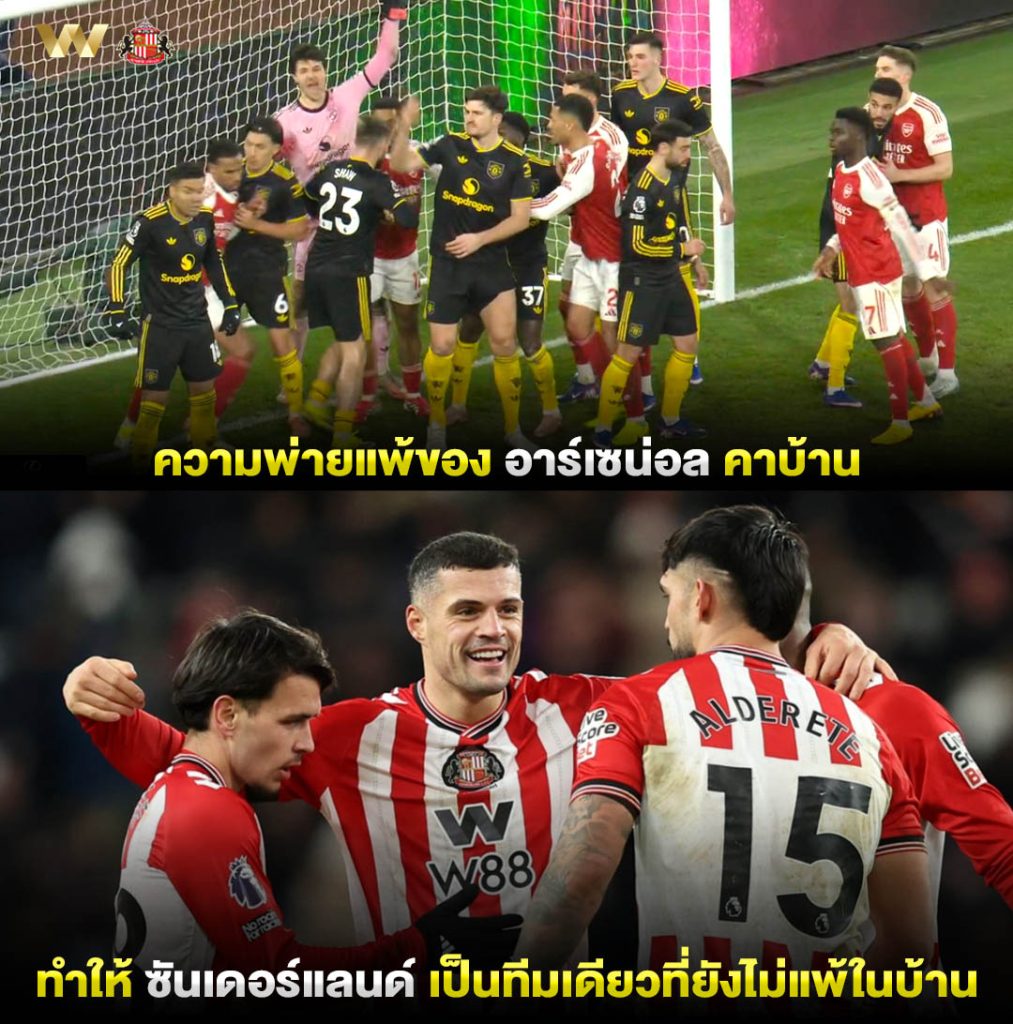 ความพ่ายแพ้บ้านของ อาร์เซนอล ทำให้ ซันเดอร์แลนด์ กลายเป็นทีมเดียวที่ยังไม่แพ้เกมเหย้าในพรีเมียร์ลีกฤดูกาลนี้ 🏟️
