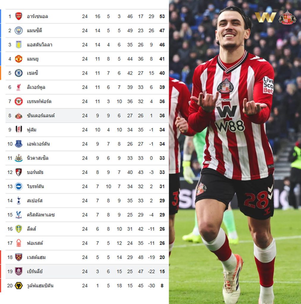 ซันเดอร์แลนด์ ฟอร์มแรงต่อเนื่อง หลังเปิดบ้านถล่มเบิร์นลีย์ 3-0 ขยับขึ้นมารั้งอันดับ 8 ของตารางพรีเมียร์ลีก