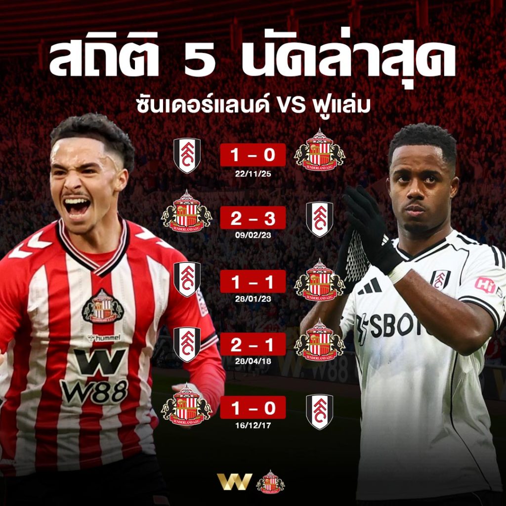 📊 สถิติ 5 นัดหลังสุด ซันเดอร์แลนด์ VS ฟูแล่ม