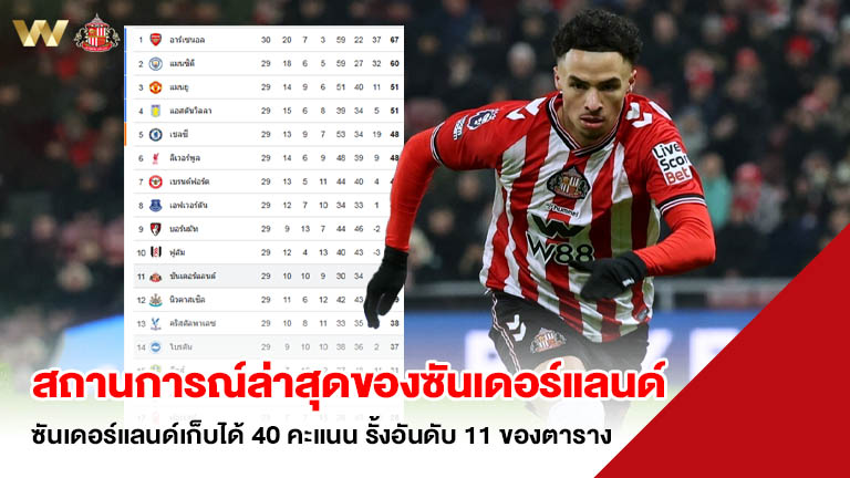 หลังผ่านไป 29 นัด ในฤดูกาลนี้ ซันเดอร์แลนด์เก็บได้ 40 ค […]