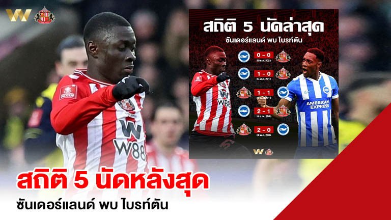 สถิติ 5 นัดหลังสุด : ซันเดอร์แลนด์ พบ ไบรท์ตัน