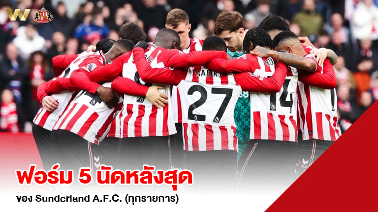สถิติฟอร์ม 5 นัดหลังสุดของ Sunderland (ทุกรายการ)